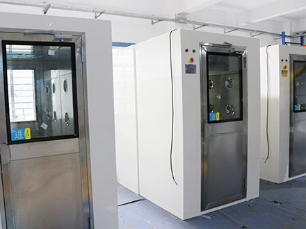 風(fēng)淋室是一種通用性較強(qiáng)的局部凈化設(shè)備,安裝于潔凈室與非潔凈室之間。當(dāng)人與貨物要進(jìn)入潔凈區(qū)時需經(jīng)風(fēng)淋室吹淋,其吹出的潔凈空氣可去除人與貨物所攜帶的塵埃,能有效的阻斷或減少塵源進(jìn)入潔凈區(qū)。風(fēng)淋室/貨淋室的前后兩道門為電子互鎖,又可起到氣閘的作用,阻止未凈化的空氣進(jìn)入潔凈區(qū)域。